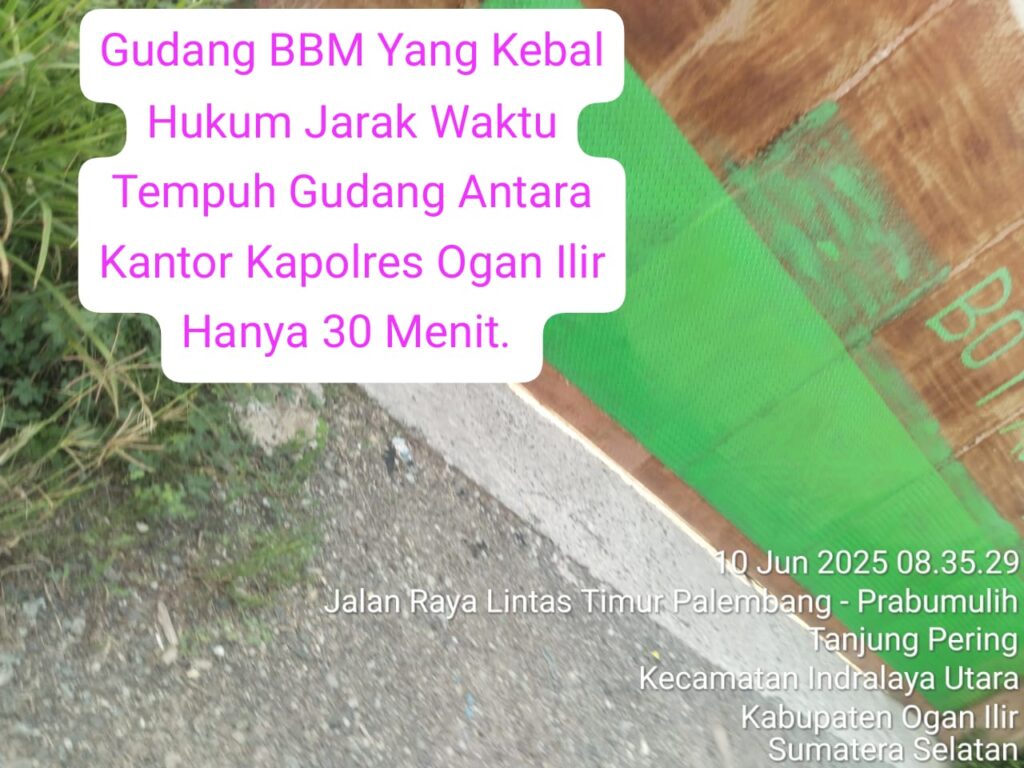 Jarak Gudang BBM Ilegal Tersebut Hanya Kurang lebih 30 Menit dari kantor Kapolres Ogan Ilir