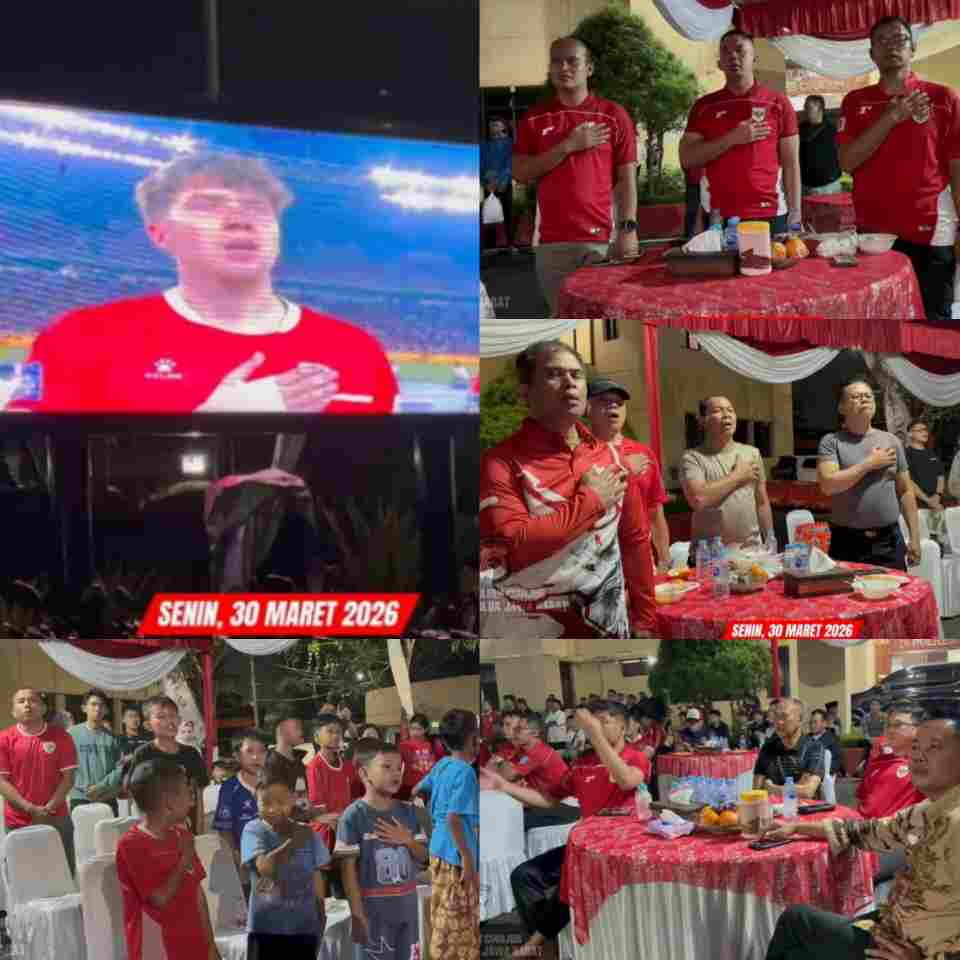 Cianjur — Polres Cianjur menggelar kegiatan nonton bareng (nobar) pertandingan FIFA Series 2026 antara Timnas Indonesia melawan Bulgaria yang berlangsung di Lapangan Apel Polres Cianjur, Senin (30/3/2026). Kegiatan tersebut dipimpin langsung oleh Kapolres Cianjur, AKBP Dr. A. Alexander Yurikho Hadi, S.H., S.I.K., M.M., M.Si., M.H.I., M.I.P., serta dihadiri oleh Wakapolres, para pejabat utama (PJU), personel Polres Cianjur, hingga masyarakat umum dan komunitas pecinta sepak bola di Kabupaten Cianjur.