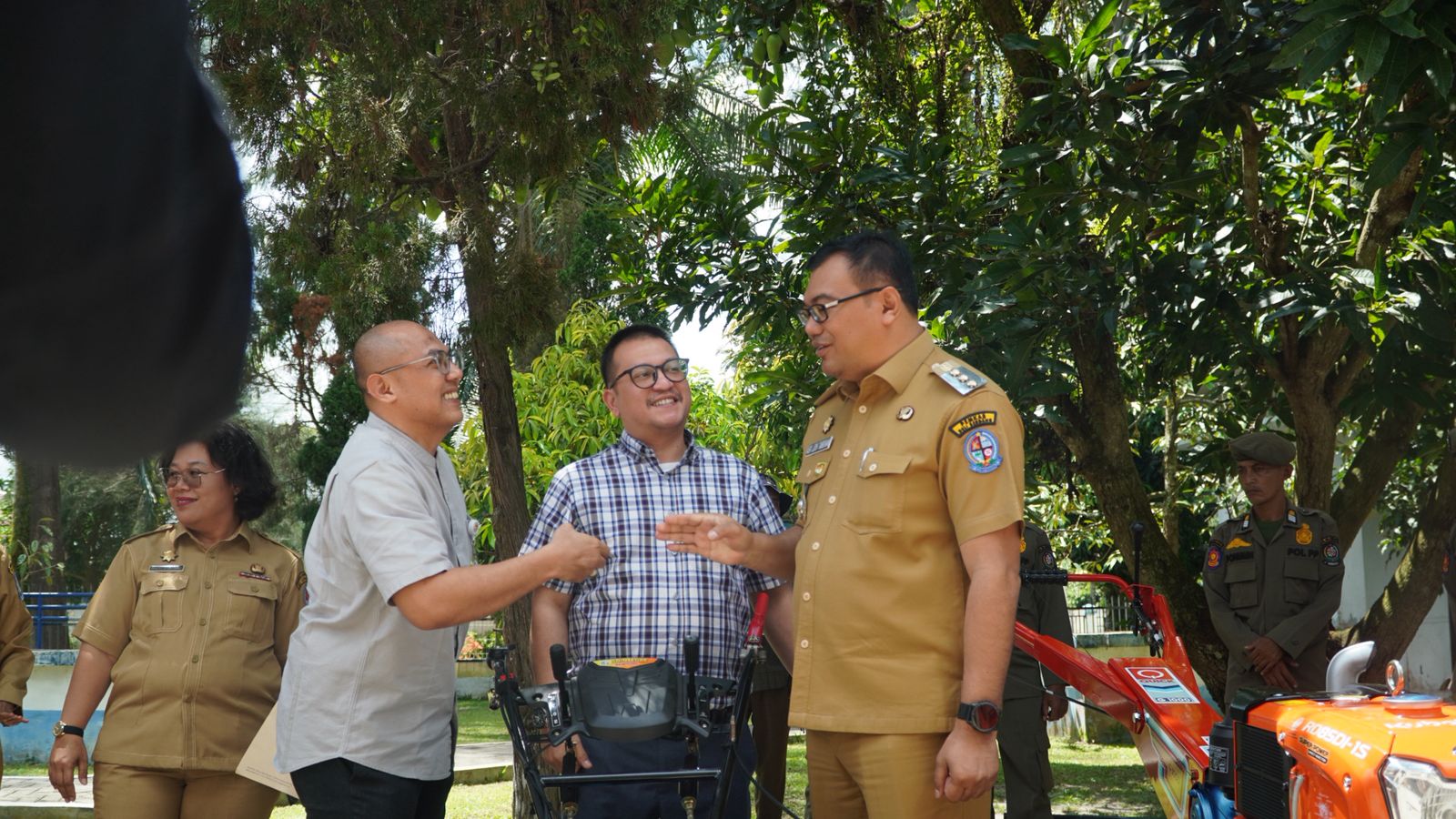 “Alsintan bebas dipakai semua kelompok tani. Tidak ada pungutan. Jangan minta apapun kepada petani,” tegas Bupati kepada seluruh pegawai di Dinas Pertanian termasuk kepala UPT dan penyuluh, pada peresmian Aula Dinas Pertanian sekaligus menerima bantuan satu unit traktor roda dua dan satu unit cultivator dari program CSR Bank Mega Syariah, Senin (16/3/2026).
