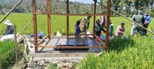 Pembuatan pondasi dudukan pompa air ini bertujuan agar mesin dapat berdiri kokoh dan tidak mudah berpindah tempat, sehingga bisa digunakan dalam jangka waktu panjang untuk membantu pengairan lahan pertanian warga.