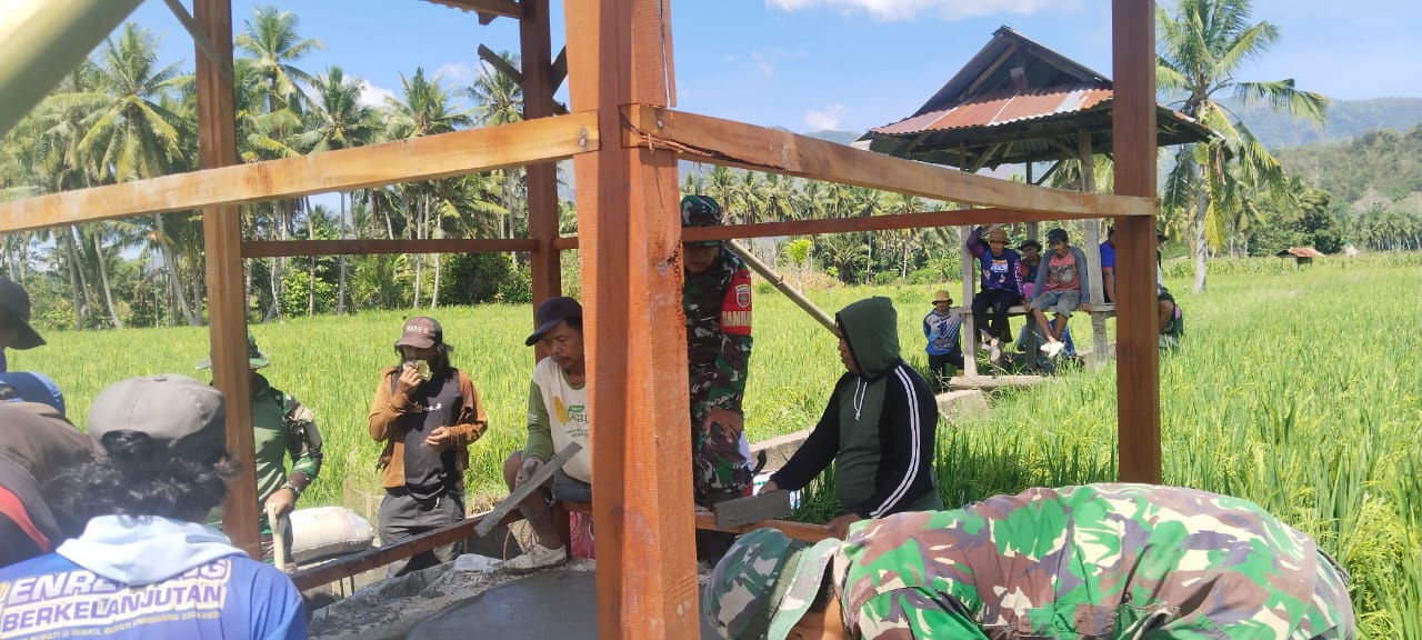 Babinsa Koramil Enrekang dan Warga Gotong Royong Bangun Dudukan Pompa Air untuk Optimasi Lahan.