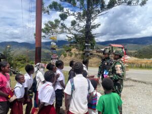 Jayawijaya, –Keceriaan tampak menyelimuti wajah anak-anak ketika mereka pulang sekol dan mendapati personel TNI Satgas Yonif 521/DY di depan Pos Napua, Distrik Napua, Kab. Jayawijaya, Papua Pegunungan (25/08/2025), dengan membawa kejutan Untuk menghibur sekaligus mengedukasi dan memberikan kuis menarik yang disambut antusias oleh anak-anak.