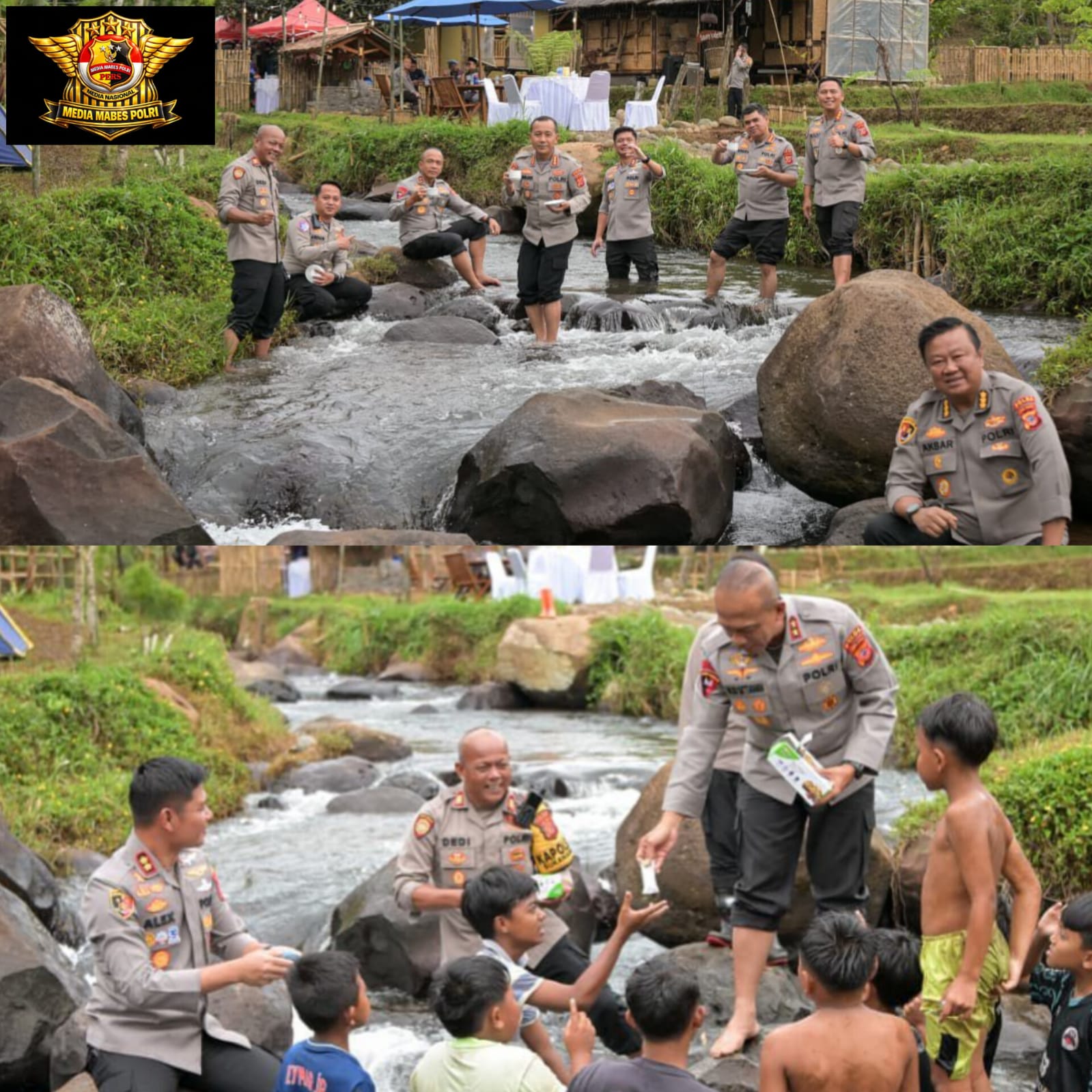 Raut kebahagiaan tampak jelas dari wajah anak-anak yang tengah bermain air di sungai. Tawa polos dan keceriaan mereka semakin terpancar ketika Kapolda Jawa Barat, Irjen Pol. Dr. Rudy Setiawan, S.I.K., S.H., M.H., menyempatkan diri untuk menyapa sekaligus memberikan cuan kanyaah serta makanan ringan kepada anak-anak tersebut, Jum’at (16/1/2026)