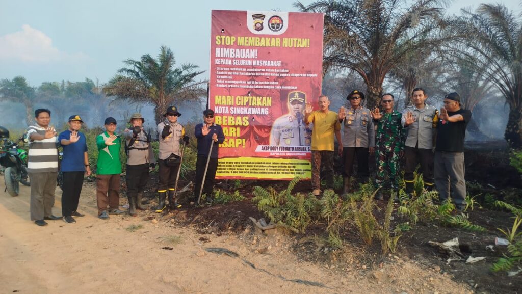 Bersama Lindungi Alam: Polres Singkawang dan Stakeholder Pasang Banner Cegah Karhutla di Singkawang Selatan