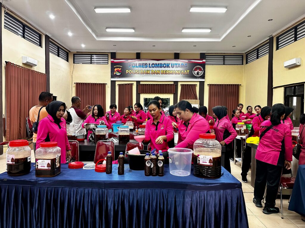 Panen eco enzym digelar di Gedung Aula Sarja Arya Racana Polres Lombok Utara, Sabtu (21/2/2026), dipimpin langsung Ketua Bhayangkari Cabang Lombok Utara, Ny. Heny Agus Purwanta.