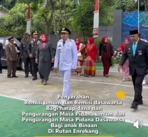 Enrekang, media mabespolri.com //17.08.2025 – Usai mengikuti upacara detik-detik Proklamasi HUT ke-80 Republik Indonesia di Lapangan Abu Bakar Lambogo, Bupati Enrekang H. Yusuf Ritangnga bersama Wakil Bupati Andi Tenri Liwang melanjutkan agenda dengan menghadiri penyerahan remisi umum, remisi dasawarsa, serta pengurangan masa pidana bagi anak binaan di Rumah Tahanan (Rutan) Kelas IIB Enrekang.