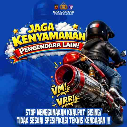 Satlantas Polres Cianjur menegaskan bahwa setiap kendaraan bermotor wajib memenuhi persyaratan teknis dan laik jalan, termasuk penggunaan knalpot sesuai standar pabrikan. Pelanggaran terhadap ketentuan ini dapat dikenakan sanksi sesuai aturan yang berlaku.