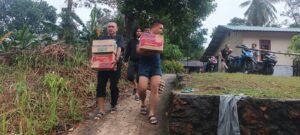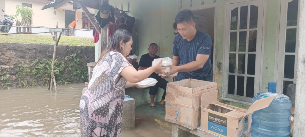Cepat tanggap Bantuan Nasi Kotak untuk Warga Terdampak Banjir di Desa Batu Berdaun.