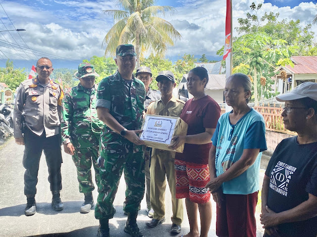 Poso, 19 Agustus 2025 – Komandan Kodim (Dandim) 1307/Poso, Letkol Arm. Edy Yulian Budiargo, S.Sos., M.Han., memberikan bantuan sembako kepada warga terdampak bencana gempa bumi berkekuatan 6,0 Skala Richter yang mengguncang wilayah Desa Masani, Kecamatan Poso Pesisir, Kabupaten Poso. (18/8).