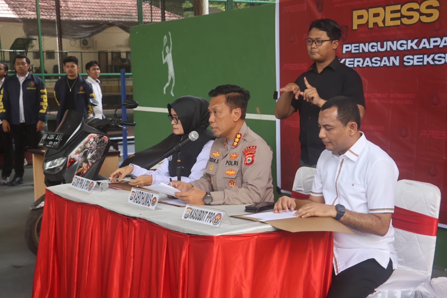 Konferensi pers dipimpin oleh Kabid Humas Polda Sulawesi Selatan Kombes Pol. Didik Supranoto, S.I.K., M.H. didampingi Direktur Reserse PPA dan PPO Polda Sulawesi Selatan Kombes Pol. Osva, S.I.K., M.Si. Dalam keterangannya, Kabid Humas menyampaikan bahwa pengungkapan ini merupakan bentuk komitmen Polda Sulawesi Selatan dalam memberikan perlindungan terhadap anak serta penegakan hukum terhadap pelaku kejahatan seksual.