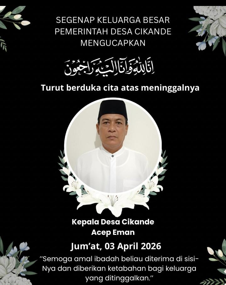 Kabupaten Tangerang – Kabar duka menyelimuti masyarakat Desa Cikande, Kecamatan Jayanti, Kabupaten Tangerang, Provinsi Banten. Kepala Desa Cikande, Acep Eman, dikabarkan telah berpulang pada Jumat, 3 April 2026. Kepergian sosok pemimpin desa tersebut meninggalkan duka mendalam, tidak hanya bagi keluarga, tetapi juga masyarakat serta berbagai pihak yang mengenalnya.