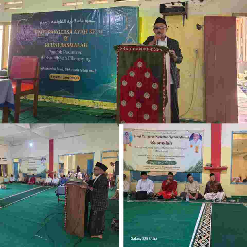 Sejak pagi hari, para peserta tampak antusias menghadiri acara yang digelar secara sederhana namun sarat nilai kebersamaan. Spanduk bertuliskan “Haflah Pangersa Ayah dan Reuni Alumni Basmallah” menjadi simbol penghormatan terhadap para guru dan pendiri yang telah meletakkan dasar keilmuan bagi para santri.