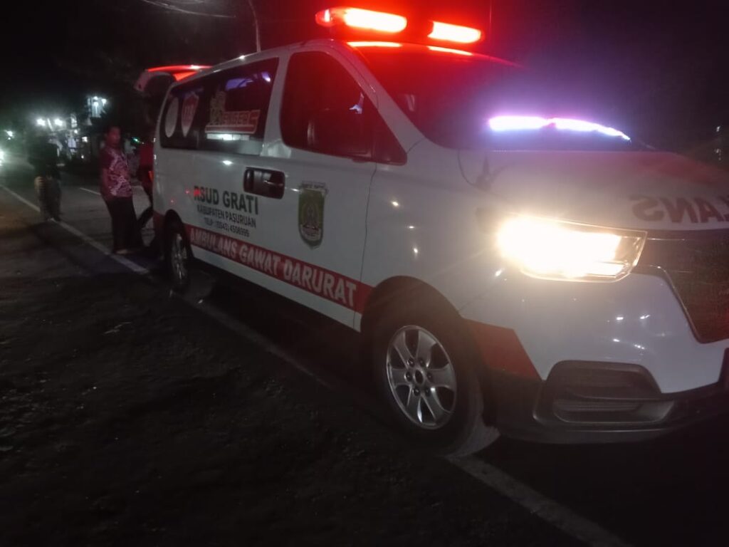 Jangan terburu buru kalo mau berpergian jaga keselamatan anda.keselamatan itu penting waspada lah kita berkendara keluarga anda menunggu. warga kampung baru menolong yang korban laka tersebut mobil ambulan segera datang dengan tepat waktu dan langsung di bawa di RSUD grati. Dengan kesigapan warga kampung baru tersebut patut di acungi jempol dengan ada nya pertolongan pertma sebelum di bawa di RSUD grati.