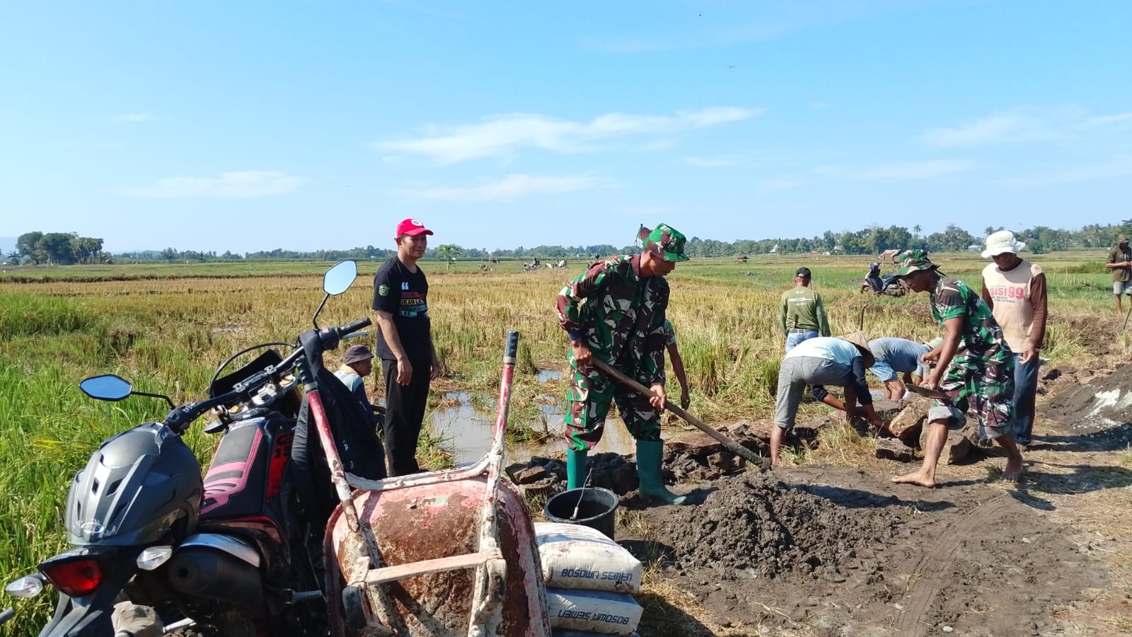 “TNI hadir bukan cuma jaga keamanan. Kami juga jaga ekonomi rakyat. Kalau jalan tani kuat, hasil panen lancar. Kalau panen lancar, dapur petani aman,” tegas Kapten Alham di sela-sela kerja.