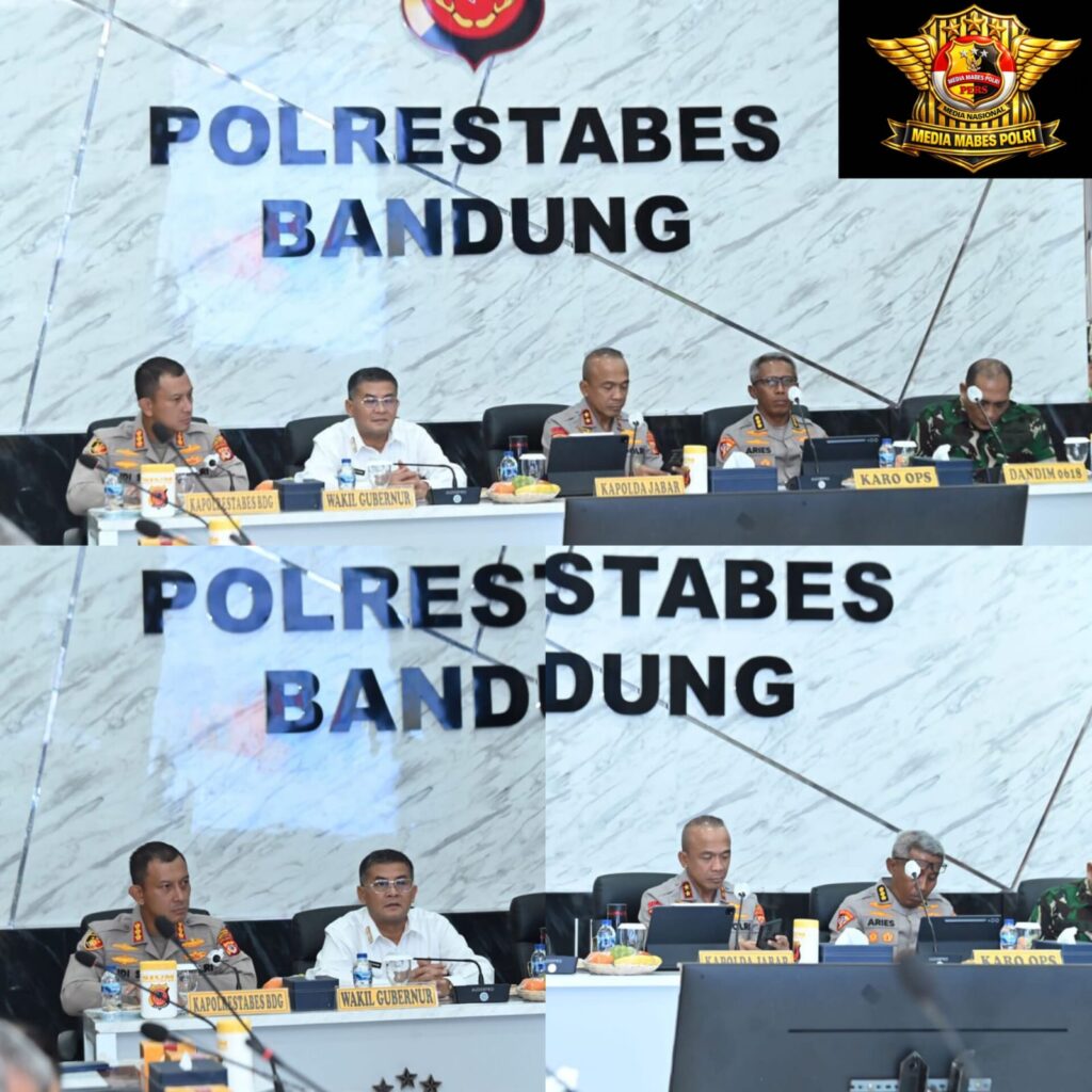 Jawa Barat – Kapolda Jawa Barat Irjen Pol Rudi Setiawan memimpin rapat koordinasi pengamanan pertandingan Liga 1 Super League 2025/2026 antara Persib Bandung melawan Persija Jakarta, Kamis (8/1/2026), di Polrestabes Bandung. Rapat tersebut dihadiri Wakil Gubernur Jawa Barat, Karo Ops Polda Jabar, Kapolrestabes Bandung, Dandim 0618 Bandung, Pejabat Utama Polda Jabar, unsur panitia penyelenggara, TNI, Dishub, Satpol PP, serta para Kabag Ops Polres jajaran.