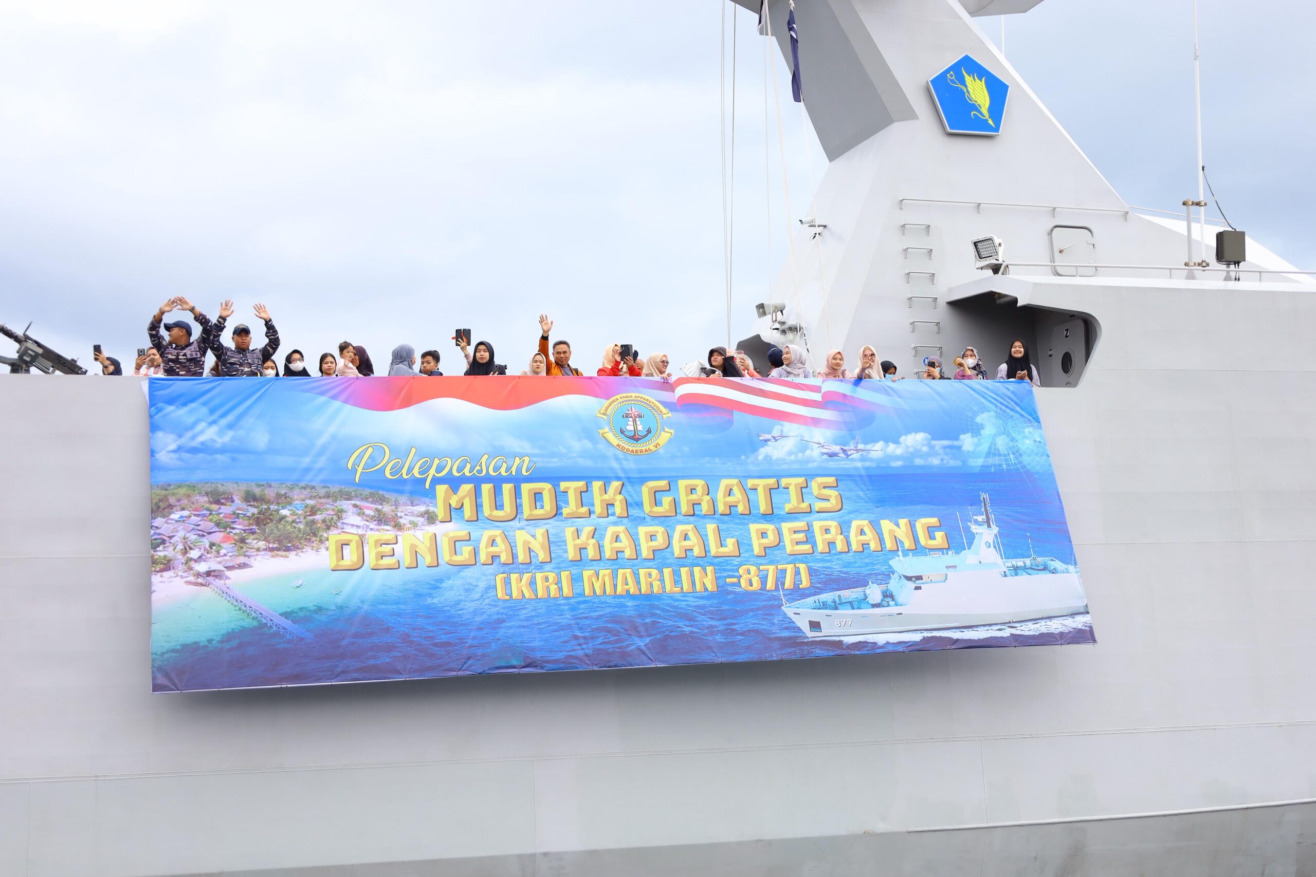 Dalam rangka mendukung kelancaran arus mudik Hari Raya Idulfitri 1447 H, Kapolda Sulawesi Selatan Irjen Pol. Djuhandhani Rahardjo Puro, S.H., M.H. menghadiri kegiatan Pelepasan “Mudik Bersama Idul Fitri 2026” menggunakan KRI Martin-877 yang digelar di Dermaga Layang Mako Koarmada VI, Makassar, Kamis 19/03/2026.