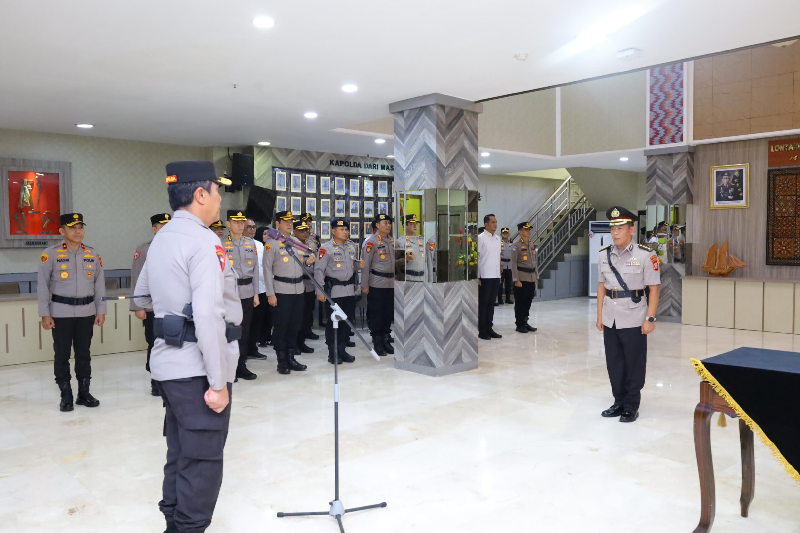 Kapolda Sulawesi Selatan Irjen Pol. Djuhandhani Rahardjo Puro, S.H., M.H. memimpin langsung Upacara Penyerahan Jabatan Kepala Biro Logistik (Karolog) Polda Sulawesi Selatan yang dilaksanakan di Loby Mapolda Sulawesi Selatan Rabu 01/04/2026