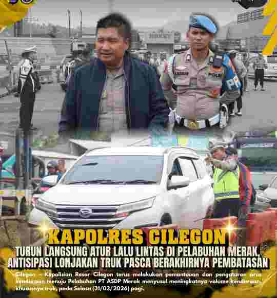 Cilegon/Banten — Guna mengantisipasi lonjakan arus kendaraan angkutan barang pasca berakhirnya masa pembatasan operasional, Kapolres Cilegon turun langsung ke lapangan untuk mengatur lalu lintas di kawasan Pelabuhan Merak, Selasa (31/3/2026).