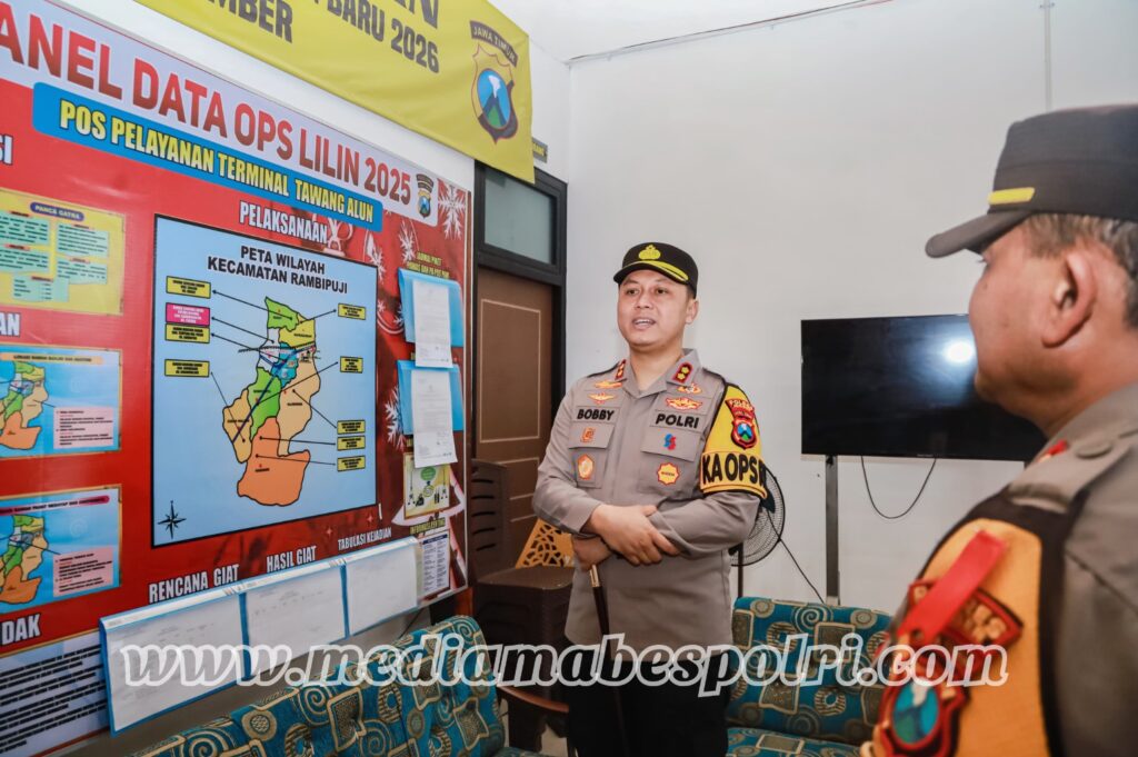 Jember, mediamabespolri.com – Kapolres Jember AKBP Bobby A. Condroputra turun langsung mengecek kesiapan petugas di sejumlah Pos Natal dan Tahun Baru (Nataru) yang tersebar di Kabupaten Jember. Tindakan ini dilakukan untuk memastikan keamanan dan ketertiban masyarakat (kamtibmas) selama perayaan Nataru berjalan aman dan kondusif.