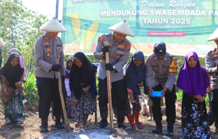 Kapolres Ngawi AKBP Charles Pandapotan Tampubolon menyampaikan bahwa kegiatan tanam jagung serentak ini merupakan salah satu langkah konkret Polri dalam membantu pemerintah menjaga stabilitas pangan dan meningkatkan kesejahteraan masyarakat petani.