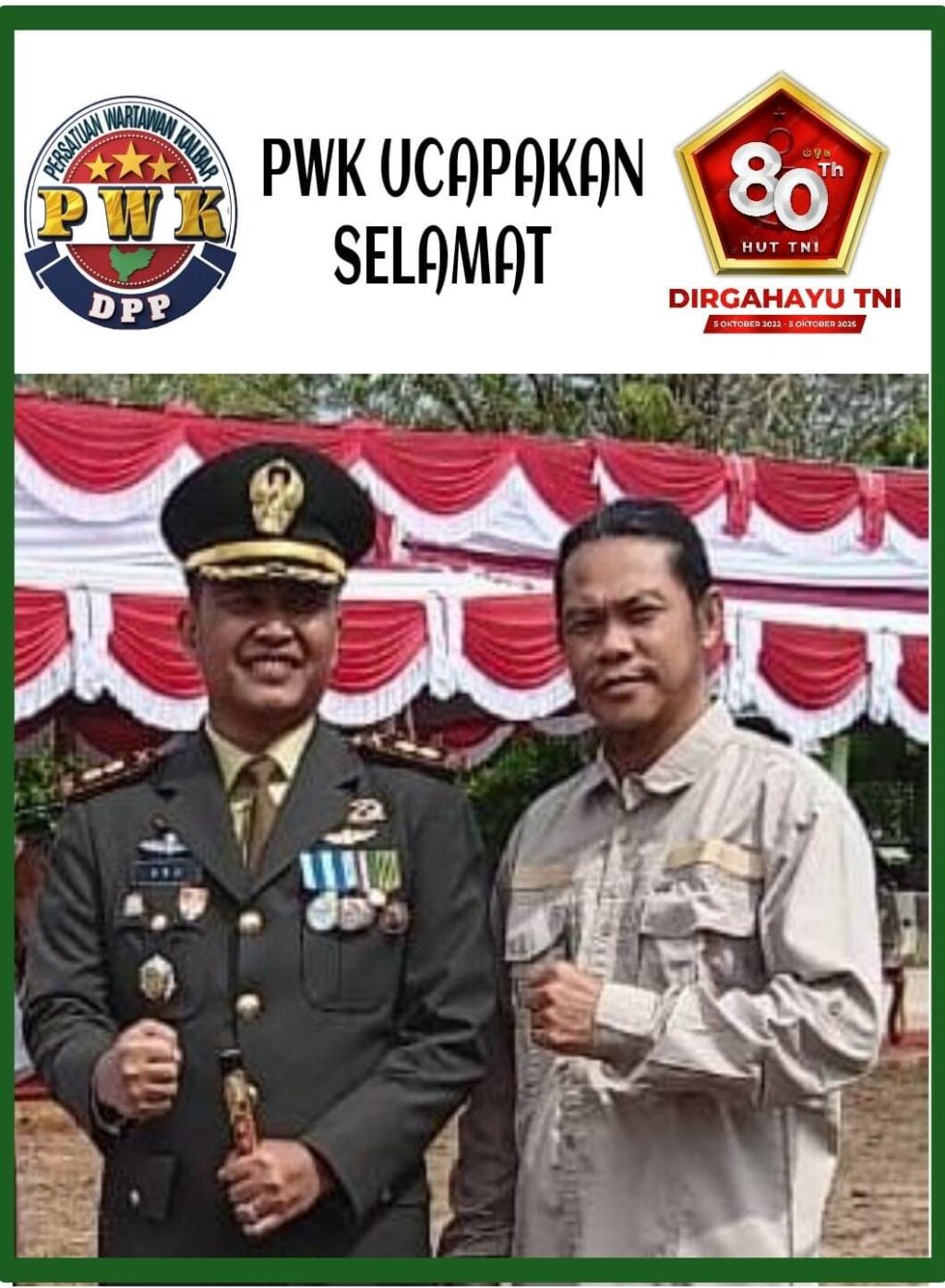 “Selamat HUT ke 80 kepada TNI, semoga TNI makin sukses berjaya dekat di hati rakyat. TNI Prima, TNI Merakyat, Indonesia Maju, “ucap Verry.