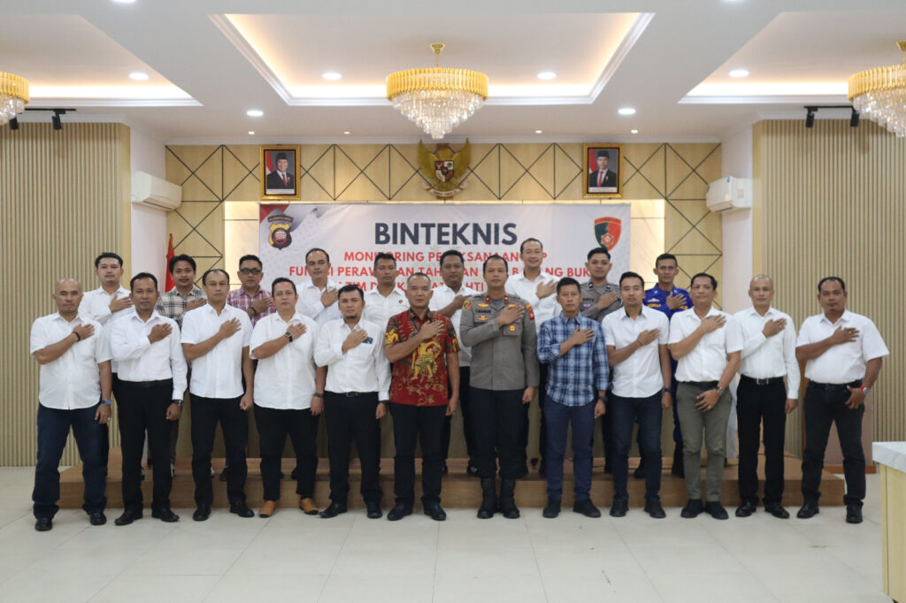 fungsi perawatan tahanan dan pengelolaan barang bukti di Aula Mapolres Ketapang, Rabu (08/10/2025) Pukul 09.00 Wib. Kegiatan monitoring tersebut dihadiri Wakapolres Ketapang Kompol Frits Orlando Siagian, S.I.K., M.H., sejumlah pejabat utama, jajaran Kasat Opsnal, anggota Sattahti Polres Ketapang serta para Kanit Reskrim Polsek Jajaran Polres Ketapang.