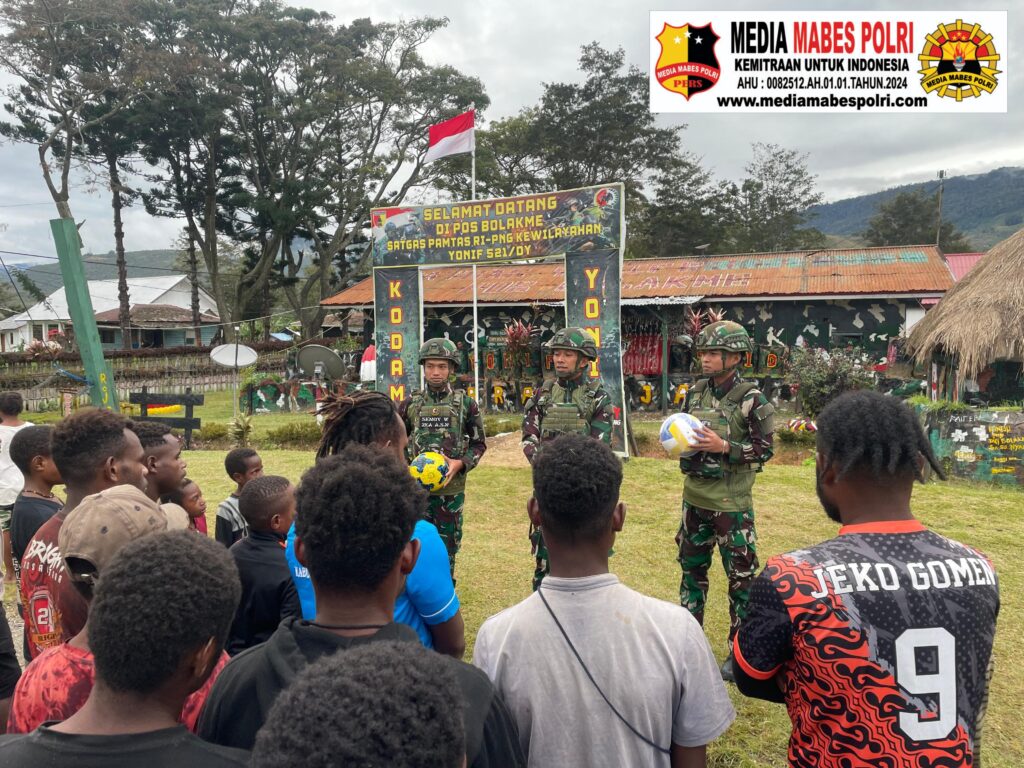 Jayawijaya – Untuk meningkatkan minat Berolahraga serta menjalin keakraban dengan pemuda dan masyarakat, Satgas Yonif 521/DY melalui Pos Bolakme memberikan bantuan berupa bola voli dan bola kaki kepada para pemuda Kampung Bolakme, Distrik Bolakme, Kab. Jayawijaya, Papua Pegunungan. (12/7/2025).