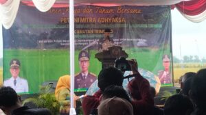 Kunjungan Anggota Kodim 0411/Km dan Anggota Koramil 411-04/Tmj dalam giat Panen raya dan tanam (MT III) bersama petani Mitra Adhyaksa di wilayah kecamatan Trimurjo binaan kejaksaan negeri Lampung Tengah di lahan persawahan Gapoktan sumber makmur Dusun 4 kampung Tempuran Kecamatan Trimurjo Kabupaten Lampung Tengah dalam rangka pendampingan Kunjungan giat mentri desa pembangunan daerah tertinggal & Transmigrasi Yandri Susanto, SPT., MPD.