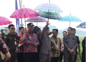 PABUNG KODIM 0411/KM MAYOR CBA SUYATNO HADIR DALAM PENDAMPINGAN KUNJUNGAN MENTRI GIAT PANEN RAYA DAN PERCEPATAN TANAM DI KAMPUNG TEMPURAN, LAMPUNG TENGAH.