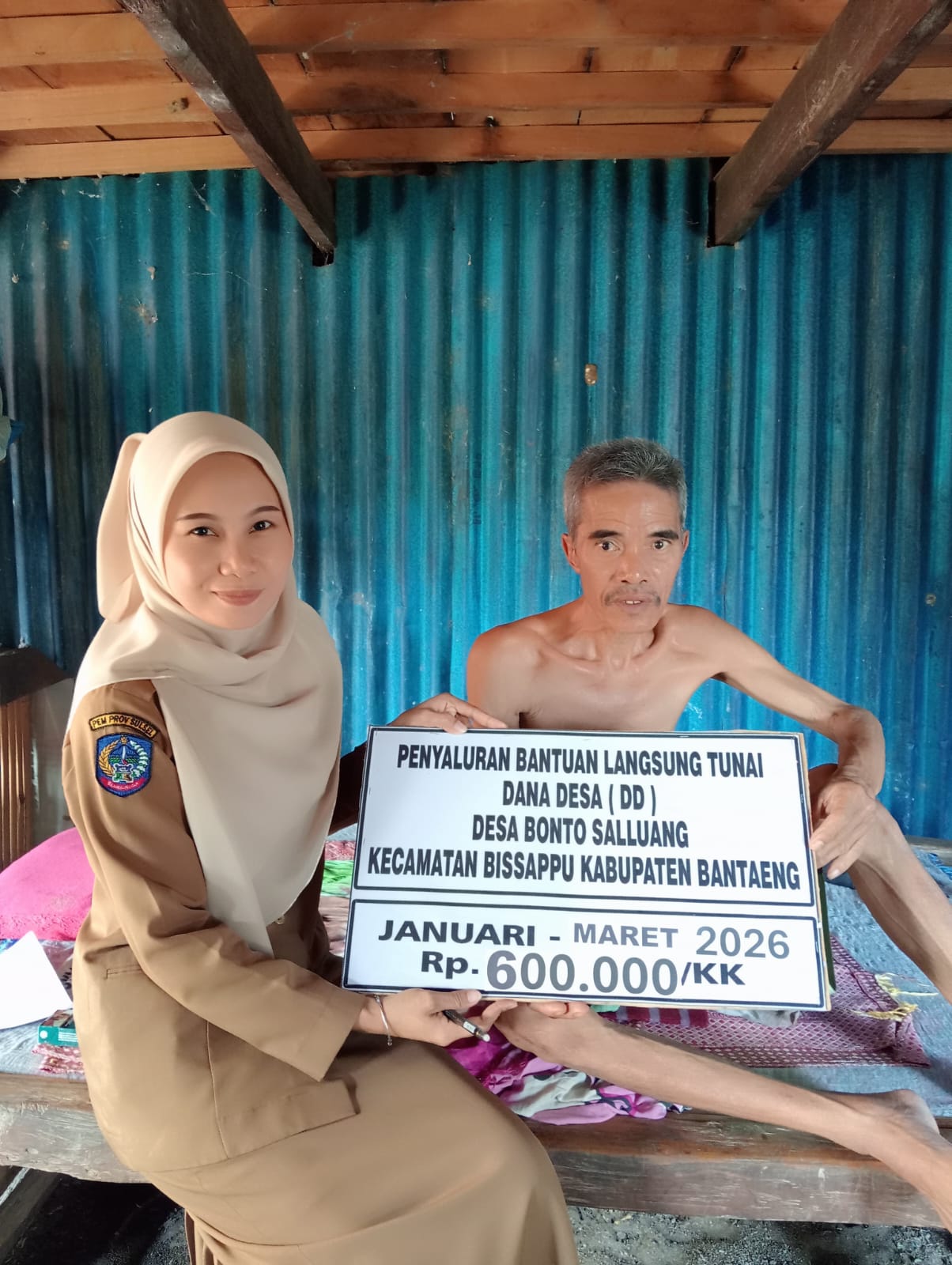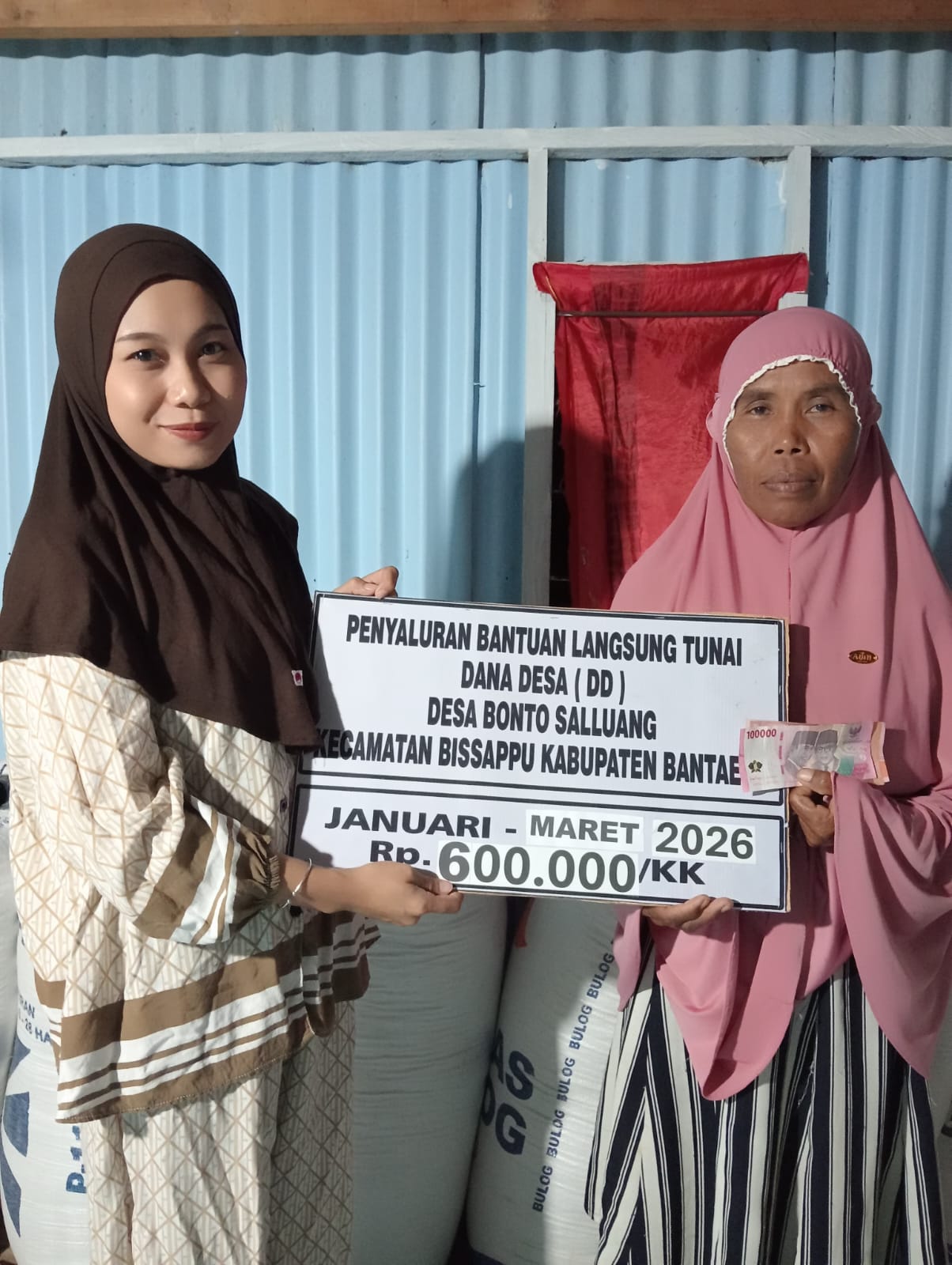 Pemerintah Desa (Pemdes) Bonto Salluang tetap berkomitmen menyalurkan Bantuan Langsung Tunai (BLT) kepada warga kurang mampu, Berlangsung di Aula Kantor Desa Bontosalluang Kec Bissappu Kab Bantaeng Provinsi Sulawesi Selatan ,jum’at 24/04/2026.