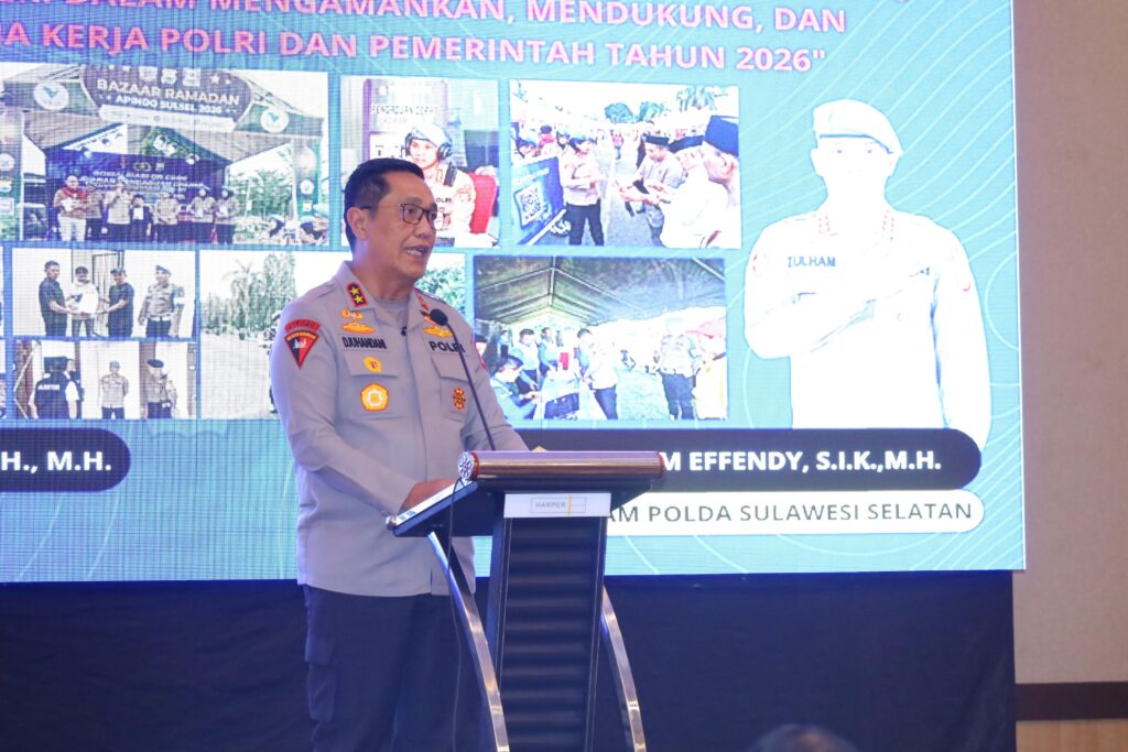 Kapolda Sulawesi Selatan Irjen Pol. Djuhandhani Rahardjo Puro, S.H., M.H. secara resmi membuka kegiatan Rapat Kerja Teknis (Rakernis) Bidpropam Polda Sulawesi Selatan Tahun Anggaran 2026 yang dilaksanakan di Hotel Harper, Selasa, 07/04/2026.