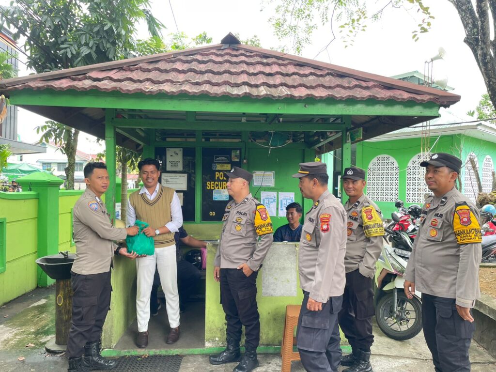 Personil Binmas Polsek Pontianak Barat Sambangi Petugas Security, Sampaikan Himbauan Kamtibmas dan Serahkan Sarana Kontak