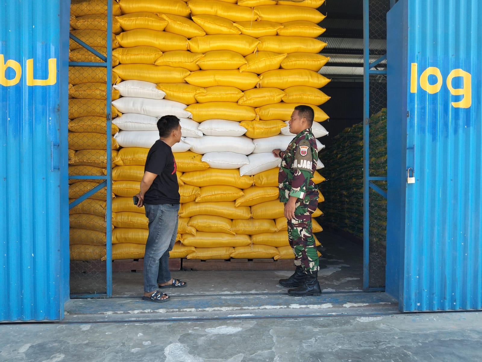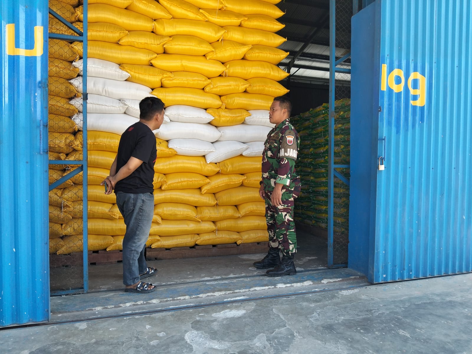 Piket Koramil 01-/Polut Pantau Gudang Bulog Untuk Memastikan Stok Beras