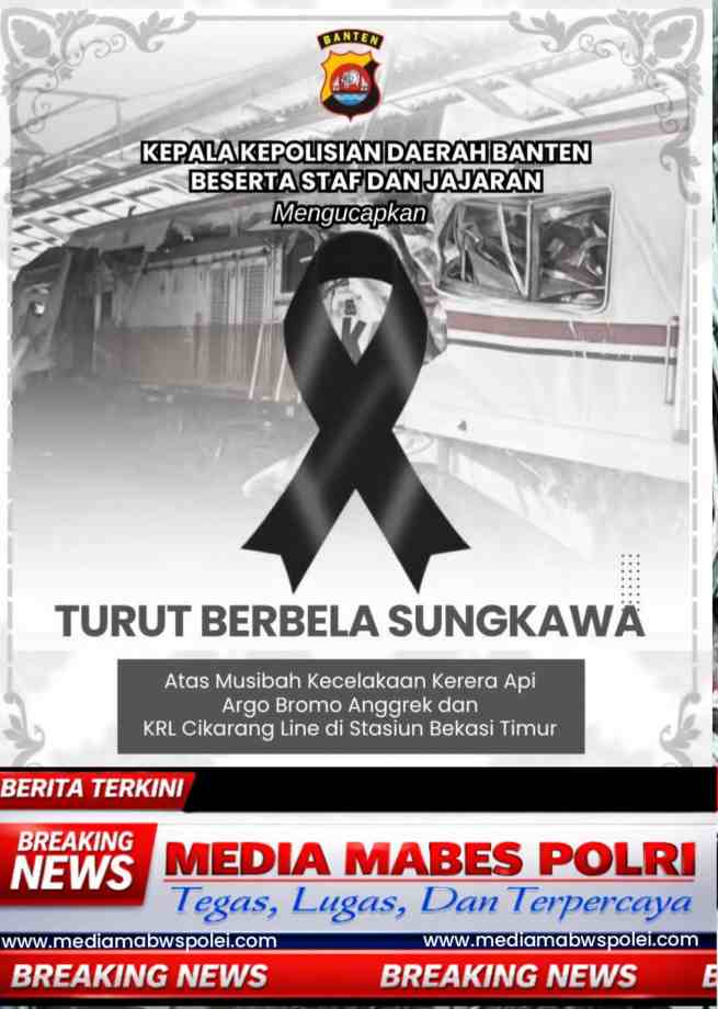 Banten, 28 April 2026 — Duka mendalam menyelimuti jajaran Polda Banten menyusul terjadinya kecelakaan kereta api yang melibatkan KA Argo Bromo Anggrek dengan KRL Commuter Line di wilayah Stasiun Bekasi Timur.