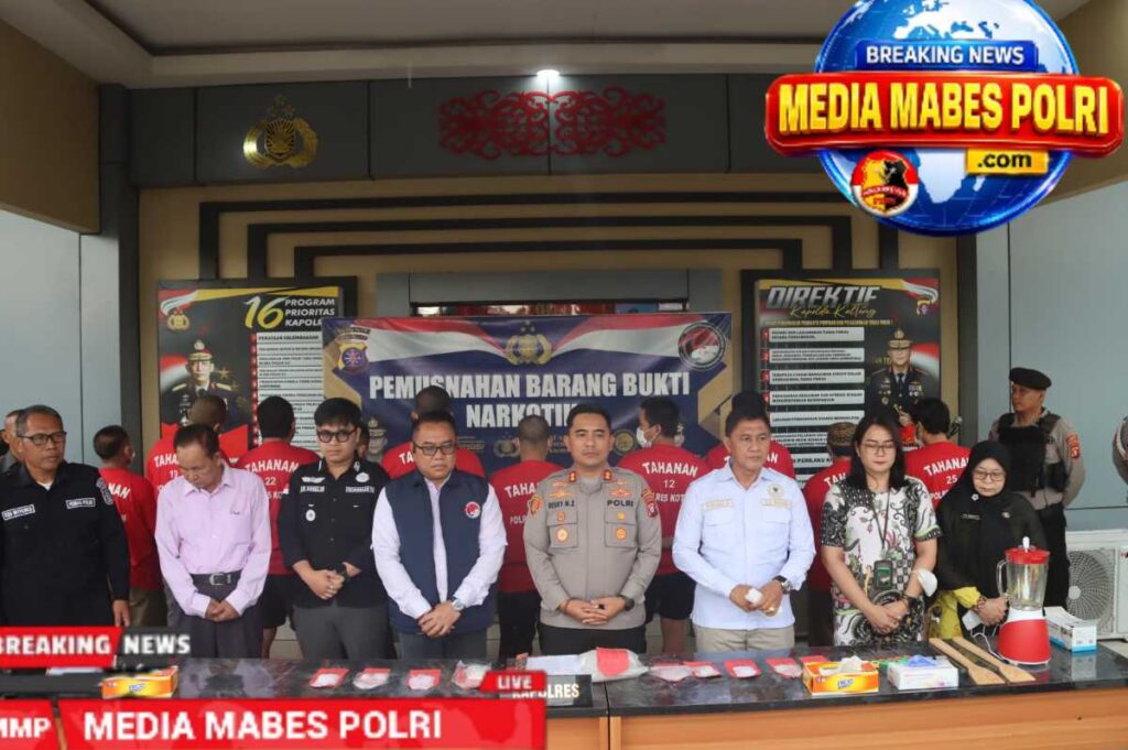 Sampit, Kotawaringin Timur (Kotim) Mediamabespolri.com// Polres Kotawaringin kembali menunjukkan komitmen kuatnya dalam memberantas peredaran narkoba. Pada hari ini, Satuan Narkoba Polres Kotim melaksanakan pemusnahan barang bukti narkoba jenis sabu di depan Loby Mapolres Kotim, dengan disaksikan oleh sejumlah pejabat penting termasuk antara lain Kapolres Kotim, Kepala BNNK Kotim, Ketua Pengadilan Negeri Sampit atau yang mewakili, perwakilan Kejaksaan Negeri Kotim, penasihat hukum, Kepala UPTD Labkesda, Bag Hukum Pemda Kotim, Kotim serta para tersangka, pada hari Kamis pagi (30/04/2026).