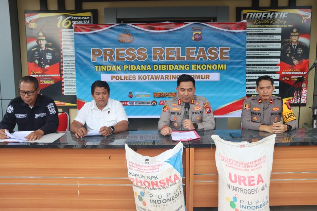 Sampit – Polres Kotawaringin Timur (Kotim) menggelar kegiatan press release terkait pengungkapan kasus Tindak Pidana Ekonomi/ Penyalah Gunaan pupuk Bersubsidi yang terjadi di wilayah hukum Polsek Jaya Karya Samuda, Press release ini dipimpin langsung oleh Kapolres Kotim AKBP Resky Maulana Zulkarnain, S.H.,S.l.K.,M.H. didampingi Kasat Reskrim AKP Sugiharso.S.H.,M.H. serta Kapolsek Jaya Karya IPDA Fauzi Alamsyah S.H.dan Kasi Humas AKP Edy Wiyoko, S.E., pada hari Kamis siang di aula loby Polres Kotim (30/04/2026)