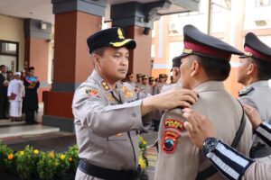 Secara khusus, Kapolres menyampaikan apresiasi atas dedikasi dan pengabdian kepada Kompol Bambang Sutaryo yang akan memasuki masa purnatugas pada 1 Mei 2026.