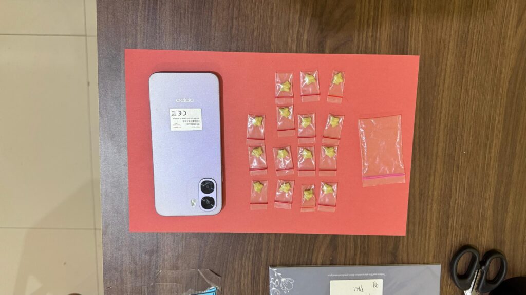 Dari hasil penggeledahan, polisi menyita satu plastik klip bening ukuran sedang yang berisi 15 paket kecil pil ekstasi berlogo “Gorila” warna kuning dengan berat bruto 7,95 gram. Selain itu, turut diamankan satu unit telepon seluler yang diduga digunakan untuk mendukung aktivitas transaksi narkotika.