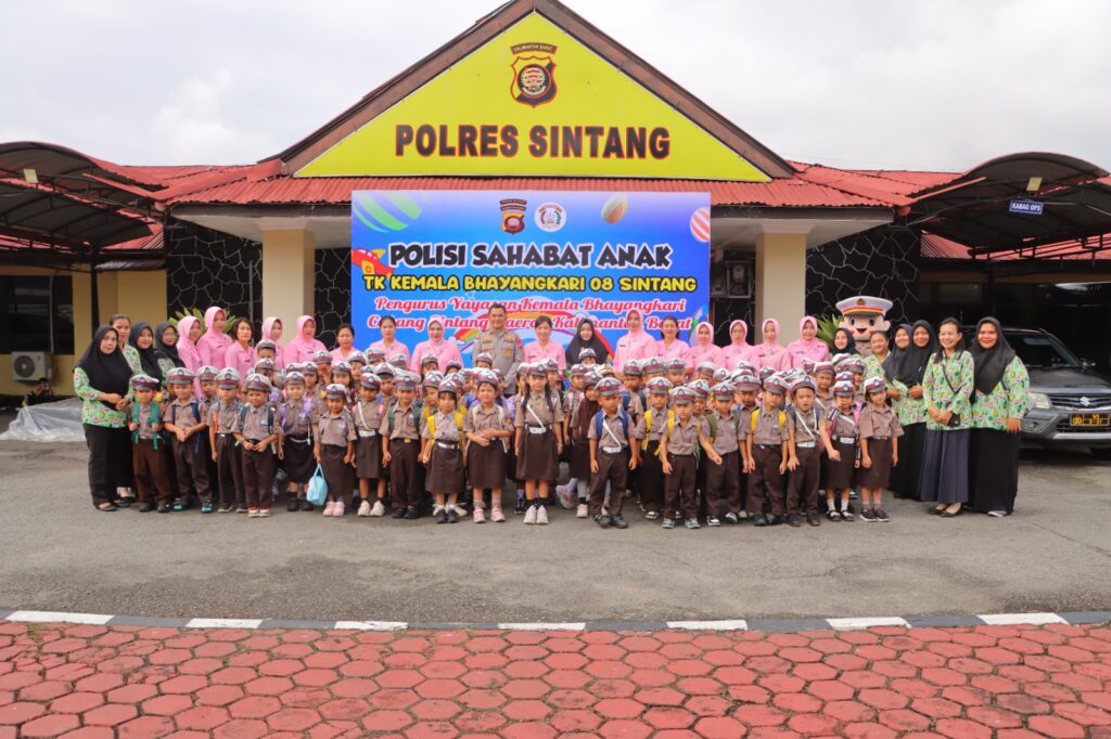 Sintang, Kalbar –Mediamabespolri.com Polres Sintang kembali menggelar kegiatan Polisi Sahabat Anak sebagai upaya mendekatkan institusi Kepolisian dengan anak-anak sejak usia dini. Kegiatan ini diikuti oleh anak-anak TK Kemala Bhayangkari 08 Sintang yang berkunjung langsung ke Mapolres Sintang, Selasa (13/1) Pagi.