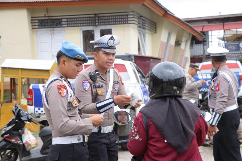 Selain melakukan penindakan, petugas juga aktif menyampaikan imbauan secara humanis kepada para pengendara. Brosur mengenai pentingnya disiplin berlalu lintas turut dibagikan sebagai bagian dari edukasi untuk meningkatkan kesadaran masyarakat.