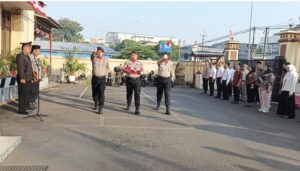Bertindak sebagai Inspektur Upacara (Irup) AKP Edi Suriadi, S.H., sementara AKP Suwito, S.H. bertugas sebagai Komandan Upacara (Danup). Jalannya upacara dipimpin oleh IPTU Cep Muslim sebagai Perwira Upacara (PA Up), serta didukung oleh Bripka A. Zulhilmi (Ajudan Irup), Aiptu Syabani (Pembaca UUD 1945), Aiptu Nawawi (Pembaca Doa), dan Aiptu Frida S. sebagai Pemandu Acara.