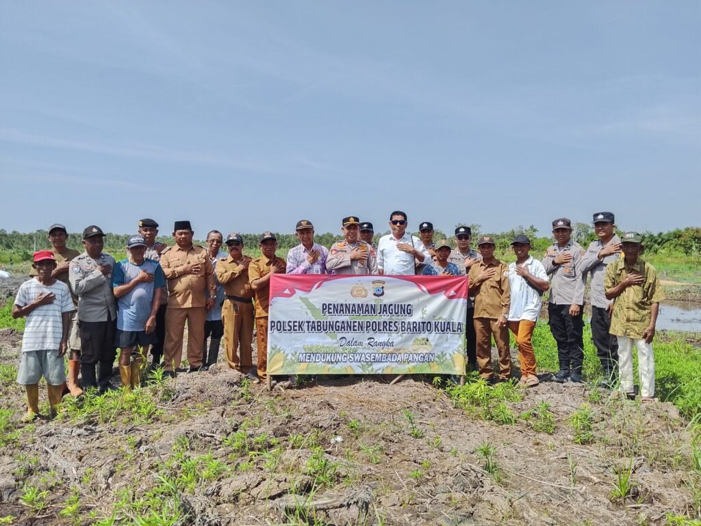 BARITO KUALA || KalSel // Mediamabespolri.com– Dalam rangka mendukung program swasembada pangan nasional, jajaran Polsek Tabunganen, Polres Barito Kuala, melaksanakan kegiatan penanaman jagung jenis Bisi-79 untuk pakan ternak. Kegiatan ini berlangsung di lahan seluas 1 hektare yang terletak di Desa Tinggiran Baru Kecamatan Mekarsari, Kabupaten Barito Kuala, pada Sabtu (25/4/2026).