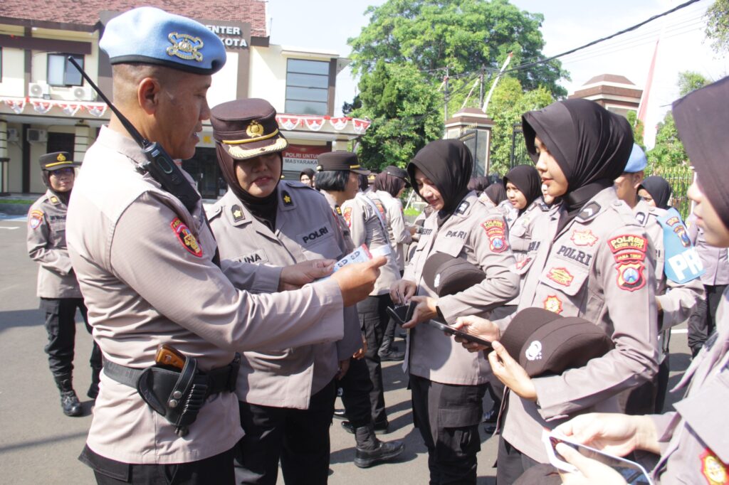 Propam Polres Kediri Kota Tegakkan Disiplin Personil Polwan dalam Apel Peringatan Hari Jadi Polwan ke-77, “Polri untuk Masyarakat”