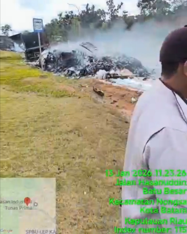 BATAM // Mediamabespolri.com Kebakaran limbah yang diduga mengandung bahan berbahaya dan beracun (B3) terjadi pada Sselasa pagi 13 Januari 2025 di kawasan PT, yang beralamat di Jalan arah kepungur Kelurahan , Kecamatan  Selain itu, masyarakat dan pengendara sekitar sempat cemas karena kebakaran tersebut menimbulkan asap tebal berwarna hitam dan putih disertai bau menyengat yang. Karena kondisi itu warga yang sedang melintas merasa khawatir dengan potensi dampak kesehatan yang mungkin terjadi dilingkungan