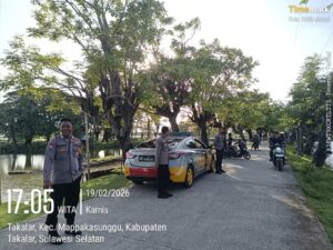 Menanti Magrib Menjelang waktu berbuka puasa Ramadhan 2026 Aparat turun di jalan Redam balap Liar, jajaran Polsek Mappakasunggu meningkatkan patroli rutin di sejumlah titik rawan. Sekitar pukul 17.15 Wita, empat personel diterjunkan menyisir Jalan Poros Takalar Lama, Kelurahan Takalar kec Mappakasunggu kab Takalar Provinsi Sulawesi Selatan, Kamis 19/02/2026.