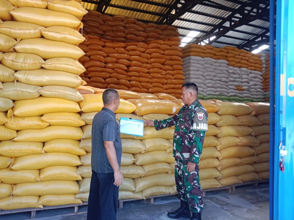Rutin Pantau Gudang Bulog, Piket Koramil 01-/Polut Pastikan Ketersediaan Beras Di Takalar