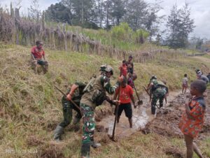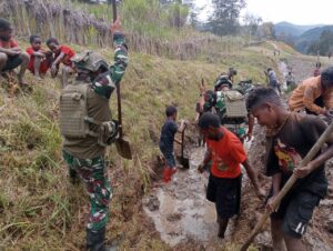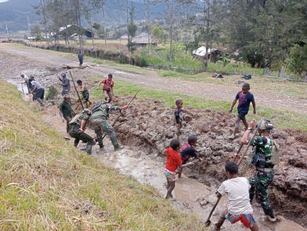 Kegiatan sederhana itu menjadi gambaran nyata bahwa keindahan Papua tidak hanya ada pada alamnya, tetapi juga pada persaudaraan yang tumbuh di antara manusia yang menjaganya. Di bawah cahaya senja, para prajurit dan warga sama-sama memandang hasil kerja mereka — parit yang bersih, jalan yang rapi, dan hati yang lapang.