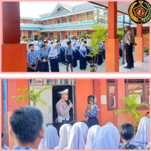 Kegiatan dimulai sejak pukul 07.00 Wita tersebut dipimpin oleh Kanit Kamsel IPDA Juhaerudin, S.H., bersama anggota, dengan memberikan edukasi langsung kepada para siswa-siswi.