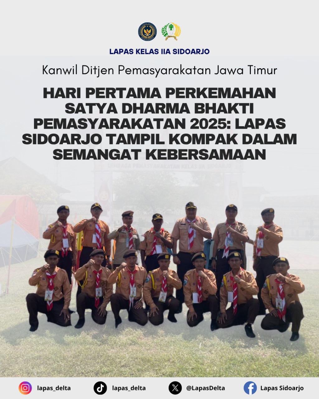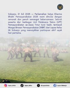 Sidoarjo, 21 Juli 2025 — Perkemahan Satya Dharma Bhakti Pemasyarakatan 2025 resmi dimulai dengan semarak dan penuh semangat