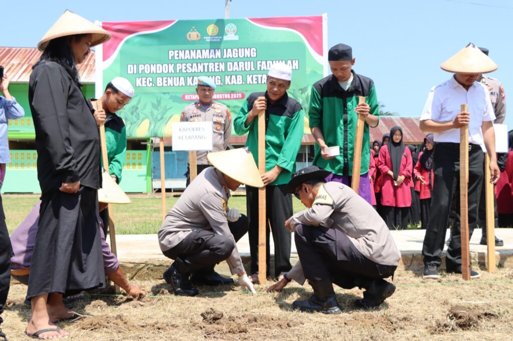 Penanaman jagung dilakukan secara simbolis oleh Kapolres Ketapang bersama para santri dan pembina pondok pesantren. Lahan seluas sekitar dua hektar yang sebelumnya belum diolah, kini disulap menjadi ladang penanaman jagung yang hasilnya nanti dapat dimanfaatkan para santri untuk kemandirian pangan.